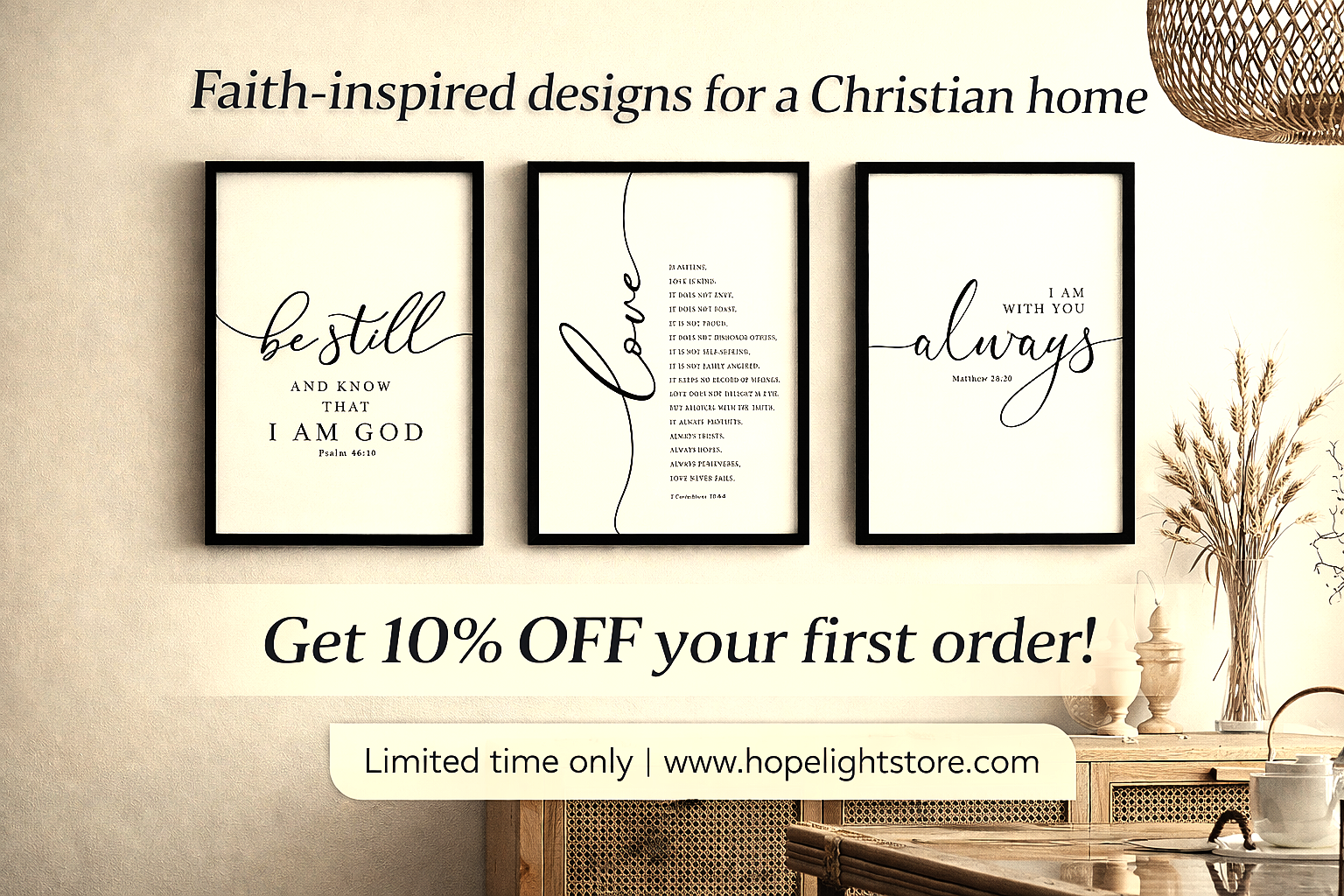 A complete 3-piece Christian scripture wall art set for a striking focal wall of faith.
